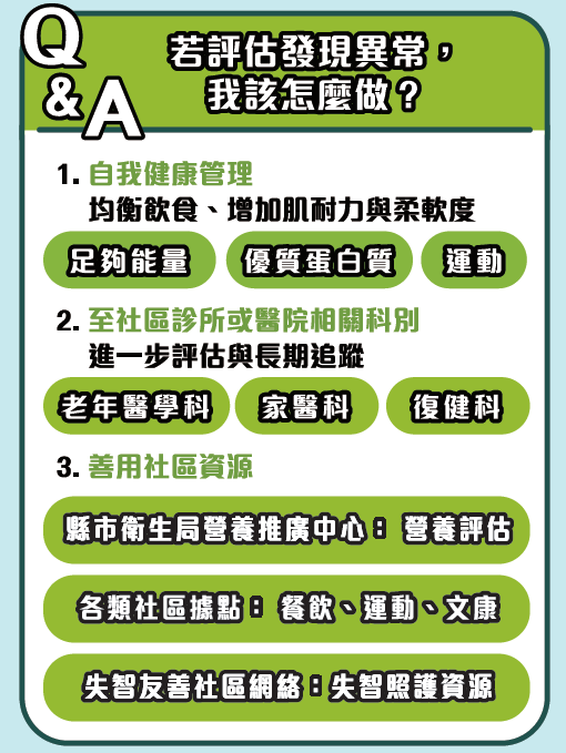 瞄準身體與心理功能的重要面向,及早介入,預防及延緩失能 國民健康署去(109)年參酌世界衛生組織長者整合性照護評估(ICOPE)指引,提供長者上述面向之整合性評估,去年試辦3個月,服務約3.8萬人。賈淑麗代理署長表示,該項服務與傳統以疾病導向的檢查不同,主要是著重長者功能之評估,有助於早期發現功能衰退狀況,維持及改善長者身體功能與心理健康。 現年68歲的許女士,生活大都待在室內處理家務,鮮少參加戶外活動,去年試辦期間接受此項評估,發現認知功能有異常,家人反映個案常有忘記說過的話和與人約會的時間,卻自覺不嚴重而沒有就醫,經此評估轉至神經內科進一步診斷,也透過醫院推薦參加社區大學的活動,如今記憶衰退程度減緩,也建立與朋友一同運動的習慣,前後差異明顯。 (資料來源/衛福部國民健康署)